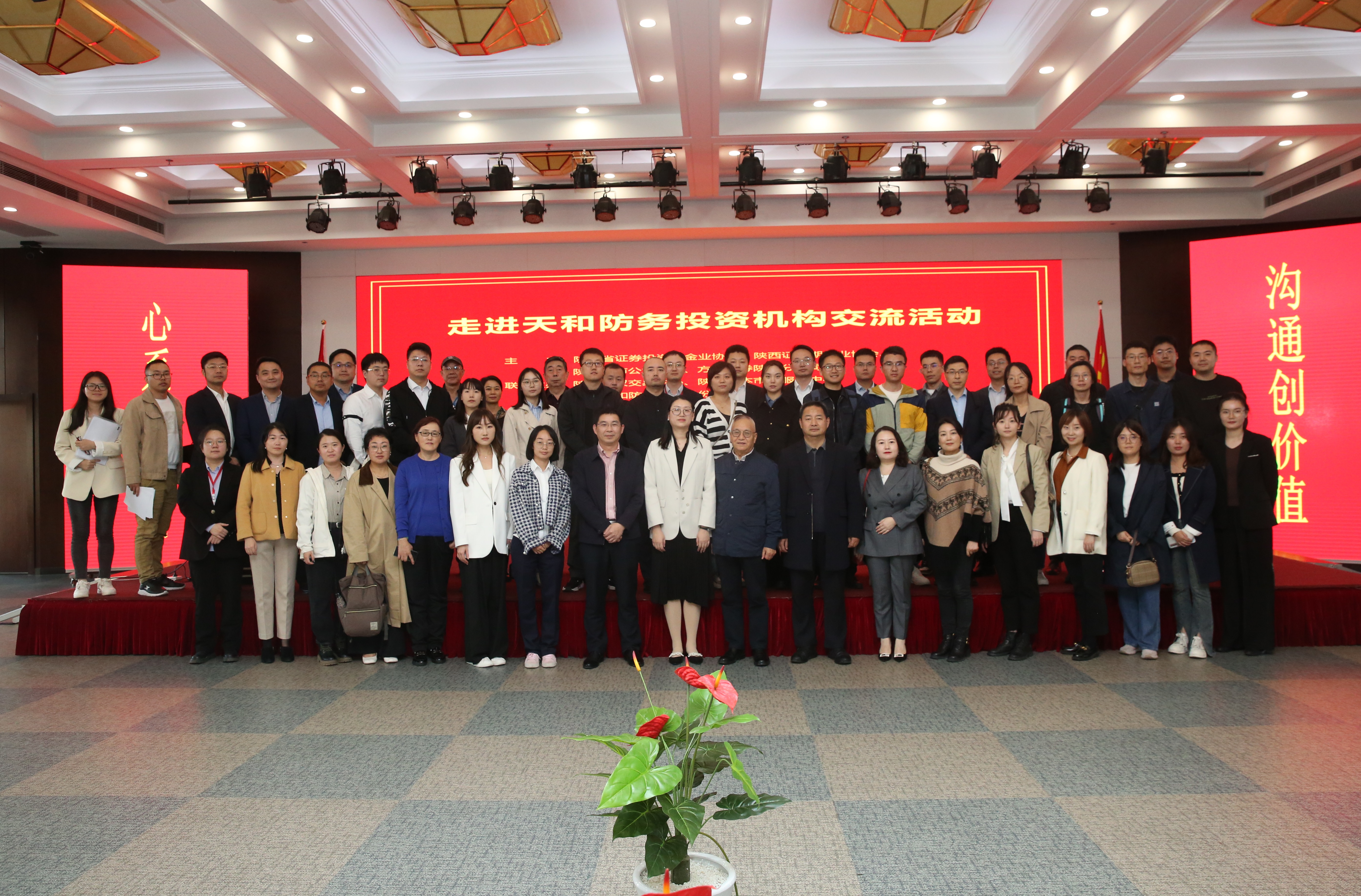 為增進(jìn)陜西省投資機構對上市公司的深入了解,搭建投資機構與上市公司互動(dòng)溝通橋梁,20231031日,陜西省證券投資基金業(yè)協(xié)會(huì )、陜西期貨業(yè)協(xié)會(huì )、陜西上市公司協(xié)會(huì )、方正證券陜西分公司聯(lián)合陜西股權交易中心、陜西資本市場(chǎng)服務(wù)中心在公司舉辦了“走進(jìn)天和防務(wù)投資機構交流活動(dòng)”。