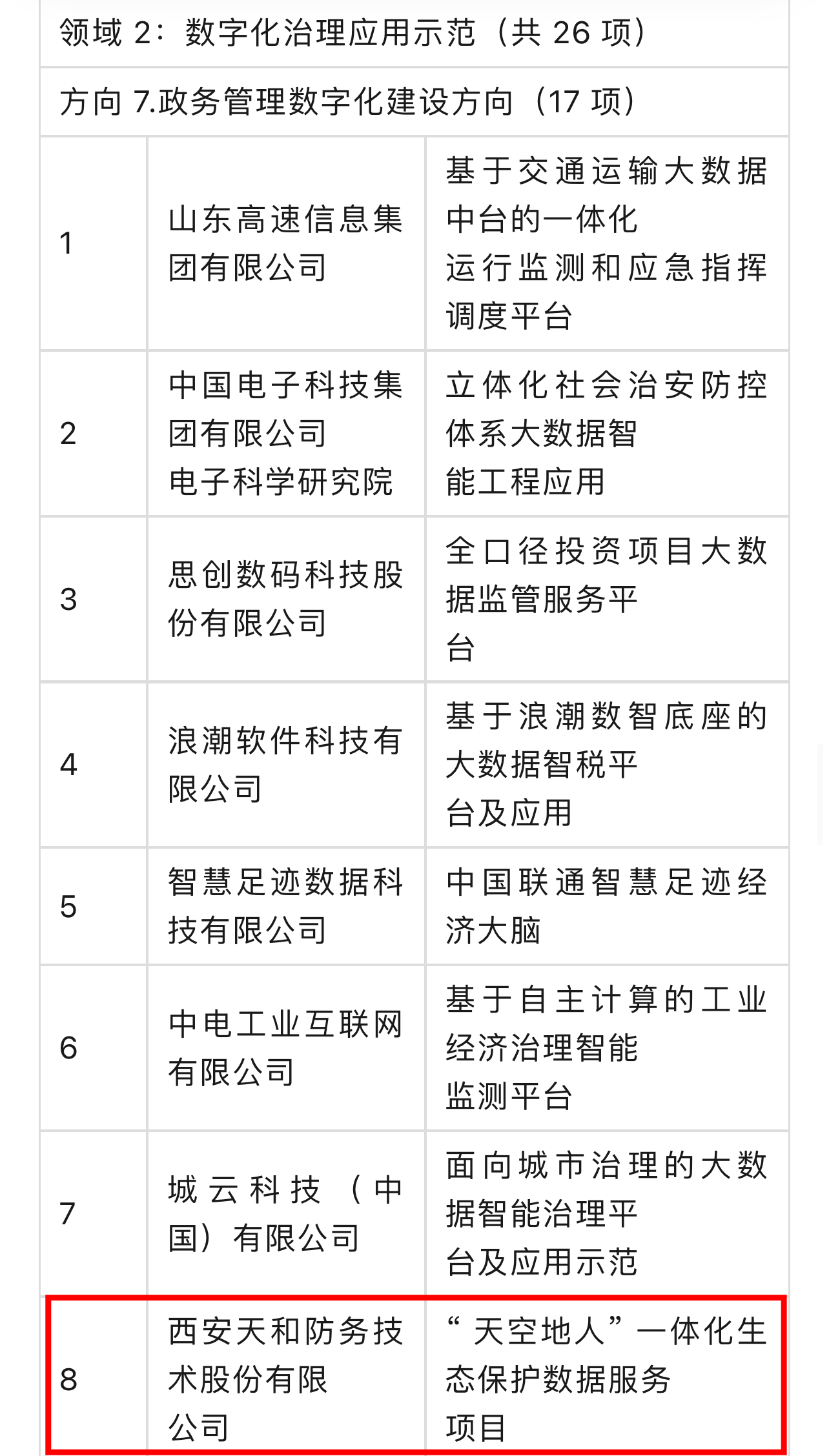 2023年12月28日,工信部網(wǎng)站發(fā)布公告,根據《工業(yè)和信息化部辦公廳關(guān)于組織開(kāi)展2023年大數據產(chǎn)業(yè)發(fā)展示范申報工作的通知》(工信廳信發(fā)函〔2023〕187號),經(jīng)企業(yè)自主申報、地方推薦、專(zhuān)家評審等環(huán)節,形成了2023年大數據產(chǎn)業(yè)發(fā)展示范名單。西安天和防務(wù)技術(shù)股份有限公司申報的“‘天空地人’一體化生態(tài)保護數據服務(wù)項目”成功入選(政務(wù)管理數字化建設方向應用示范),成為陜西省入選的兩個(gè)示范項目之一。